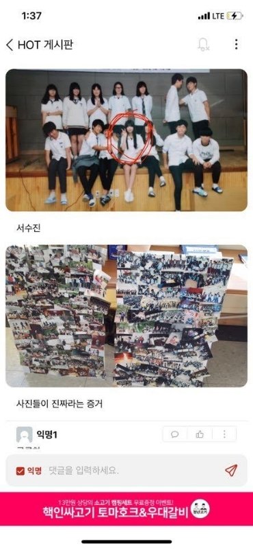 자신을 수진·서신애와 같은 중학교 동창이라고 밝힌 글쓴이는 담임 선생님, 학생 주임 선생님, 같은 반 아이들은 모두 (학교 폭력 사실을) 안다고 적었다.
